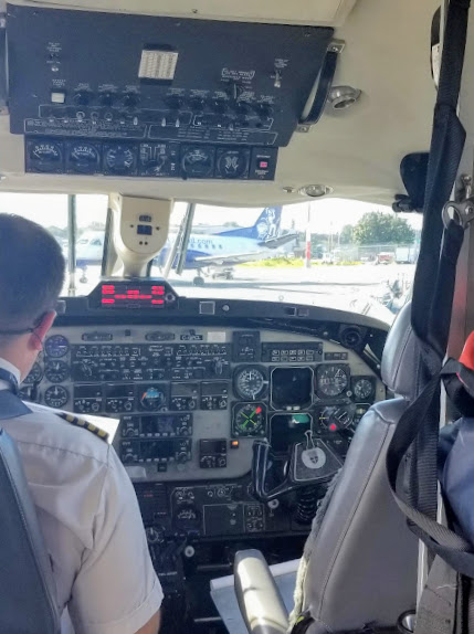 Inside the Beechcraft.