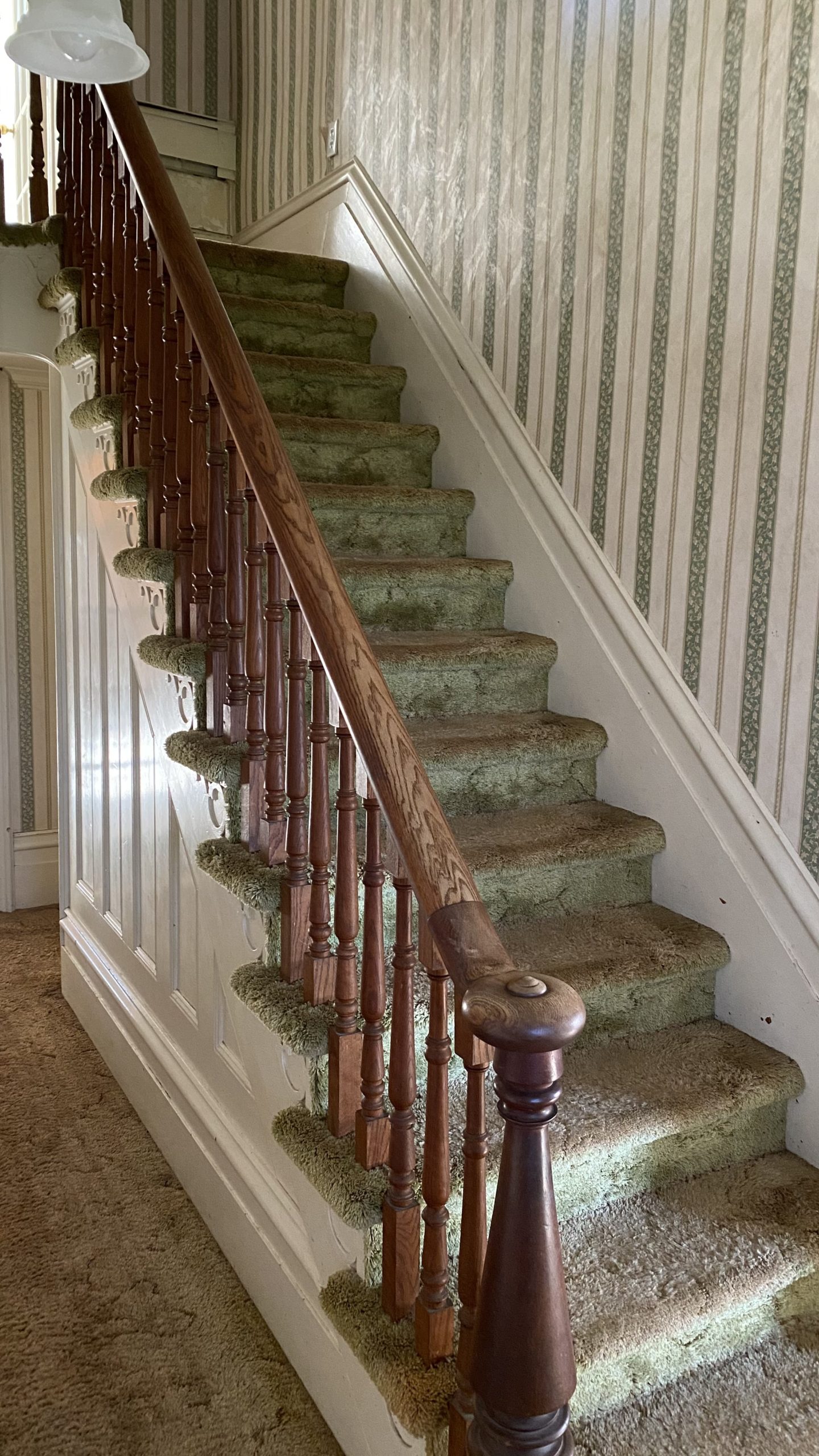 Main staircase, second worst wallpaper in the house